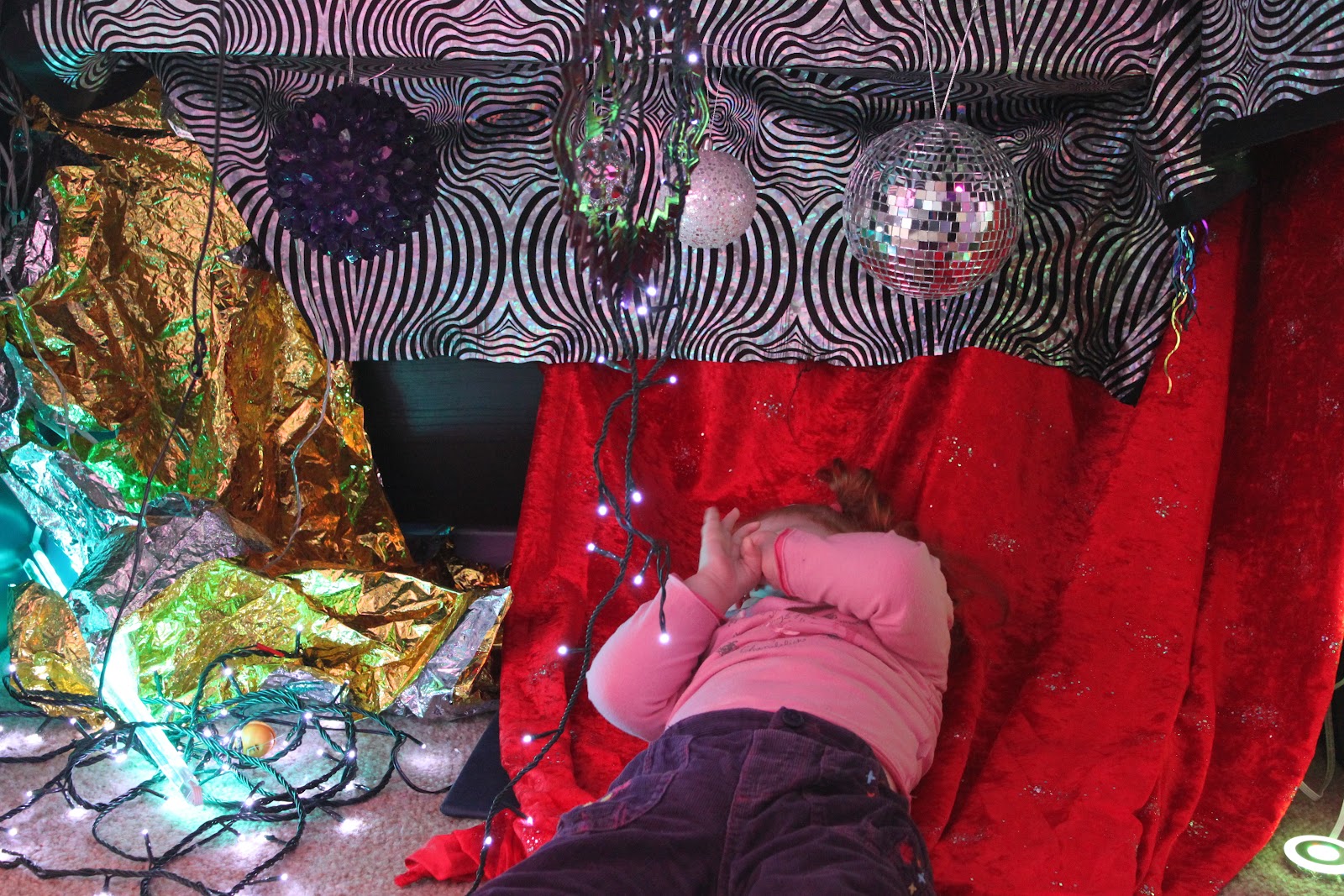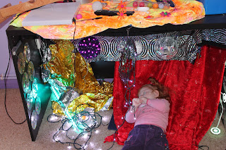 not much has changed in the extension. we did have a bit of a test run as had a guest here using it for their bedroom and stuck up some off B's Xmas pressy's and had a little look at what a nice sensory place we could turn the bedroom into!